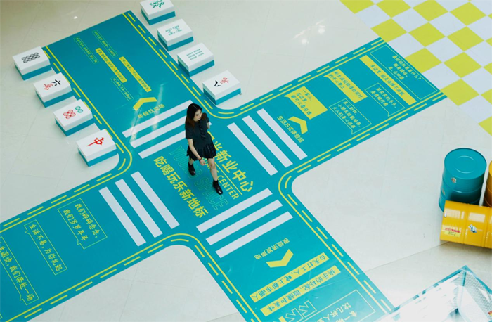 位于陽光新業(yè)中心一樓中庭的美陳打卡點,霓虹燈、油漆桶、網(wǎng)紅鐵藝網(wǎng)、治愈十字斑馬線、巨型麻將墩子...復(fù)古與新潮元素相碰撞,寶石藍(lán)與明黃搭配亮眼,并融入“潮玩體驗站”“夜經(jīng)濟(jì)發(fā)聲地”等多重互動場景,兼具九眼橋片區(qū)夜經(jīng)濟(jì)特色和購物中心自身鮮明特點,形成了以“交個新朋友”為主題的社交空間,同時將承載精彩紛呈的營銷活動。